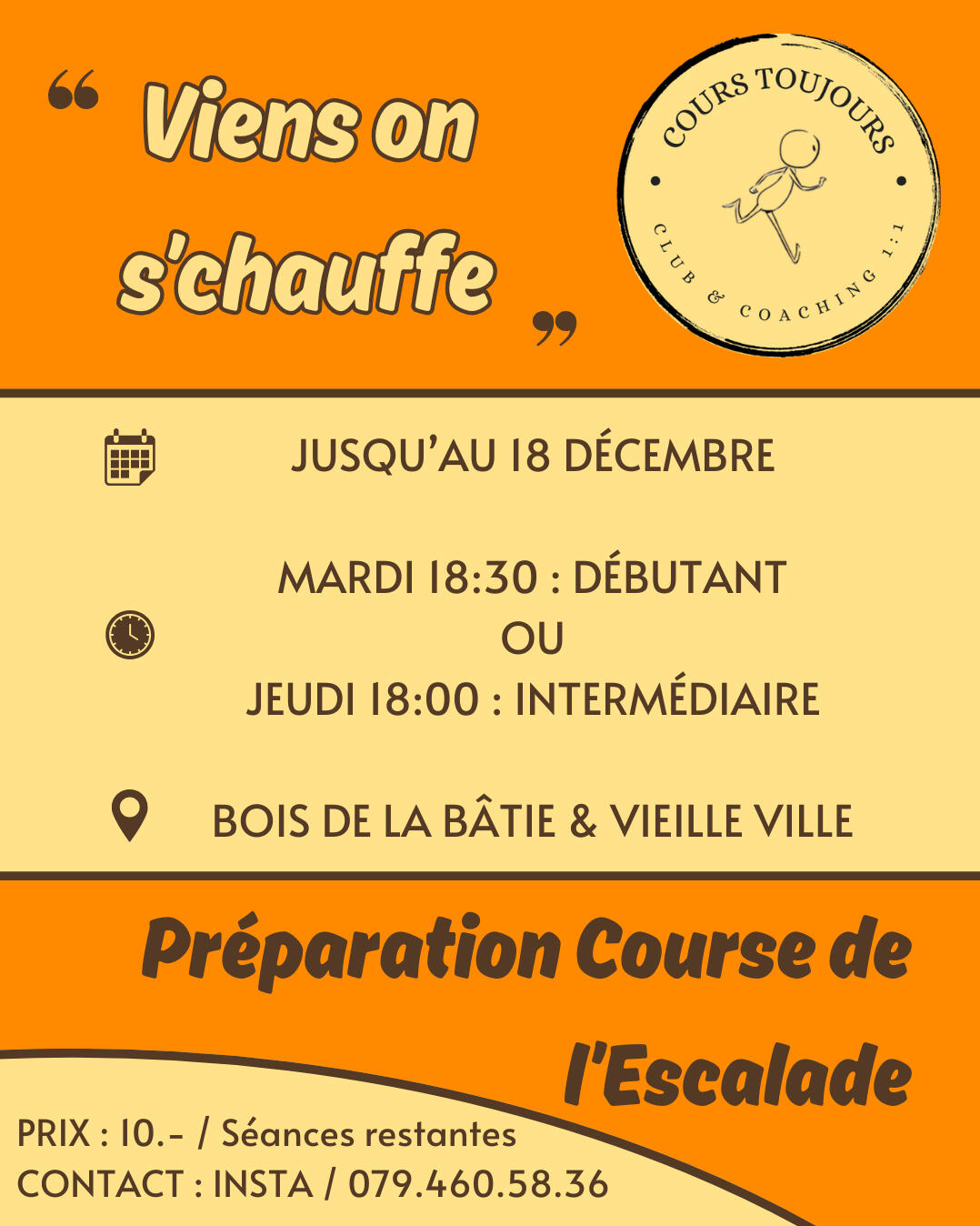 Cours Toujours Club c'est des entraînements en groupe à Genève pour préparer les courses locales. Pas de planification complexe, juste un jour, un rendez-vous, un groupe, et on s'entraîne !